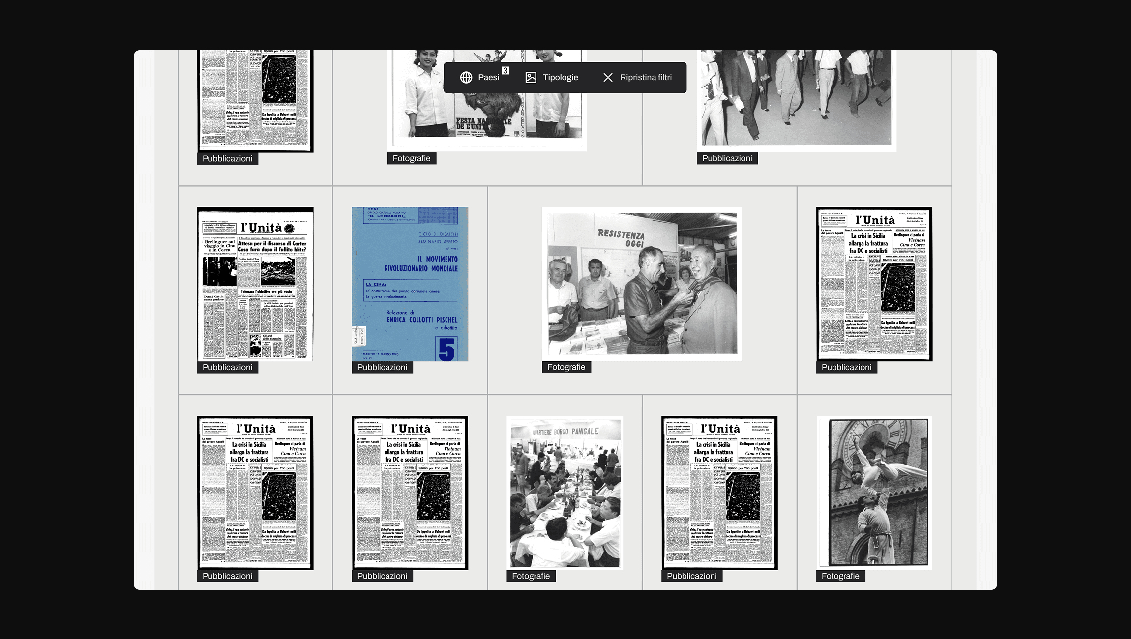 The aim of the project is to create a digital archive focused on Berlinguer's life, particularly on certain aspects such as his travels, meetings, and events he attended. The archive consists of PDF documents, images, and videos. The website also features a timeline covering both international events of recent decades and his travels.