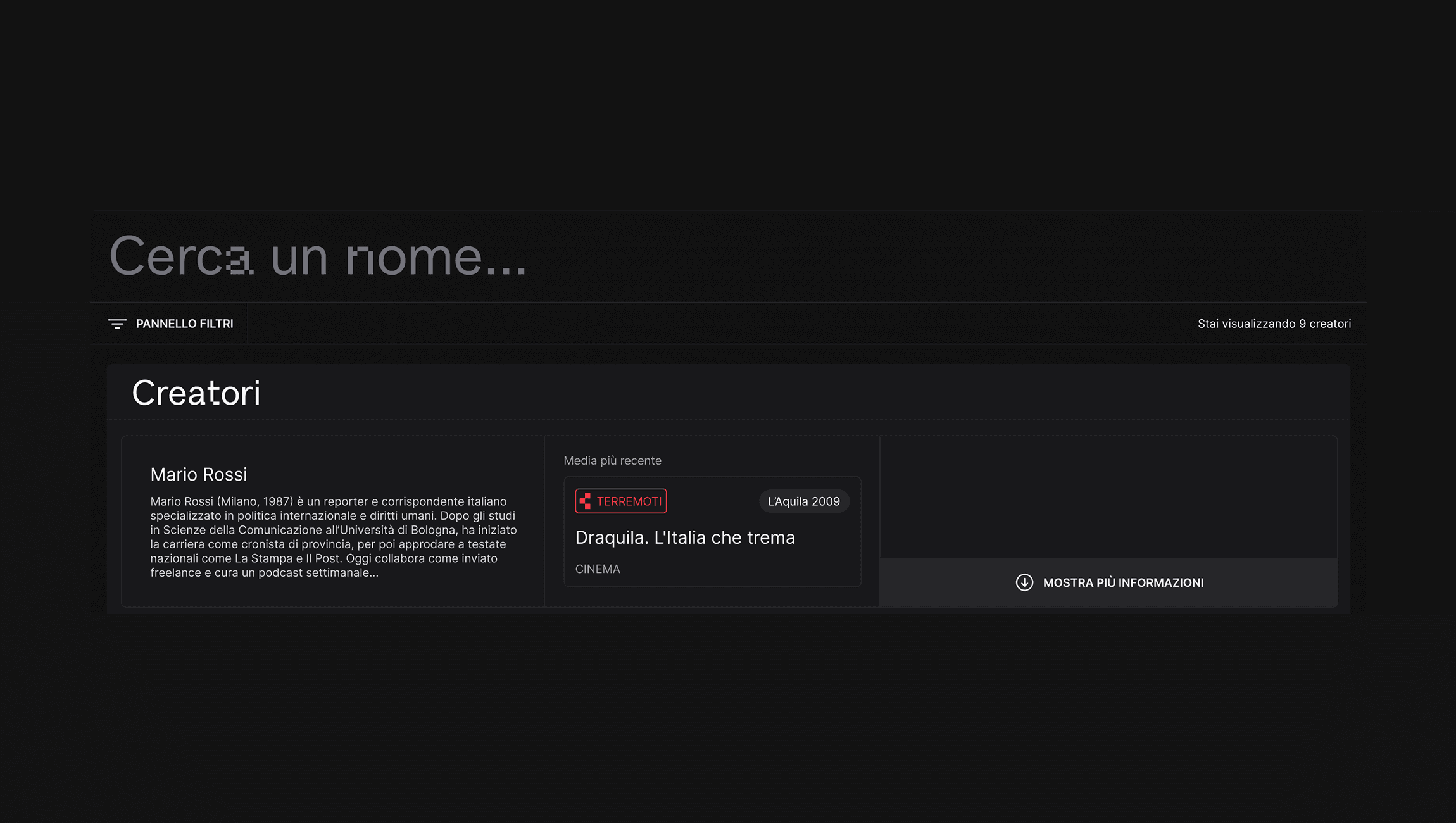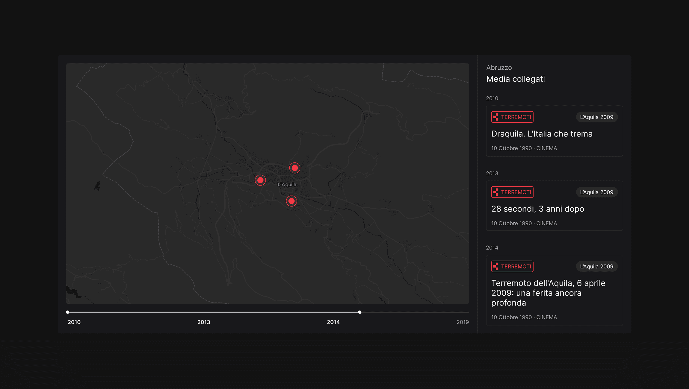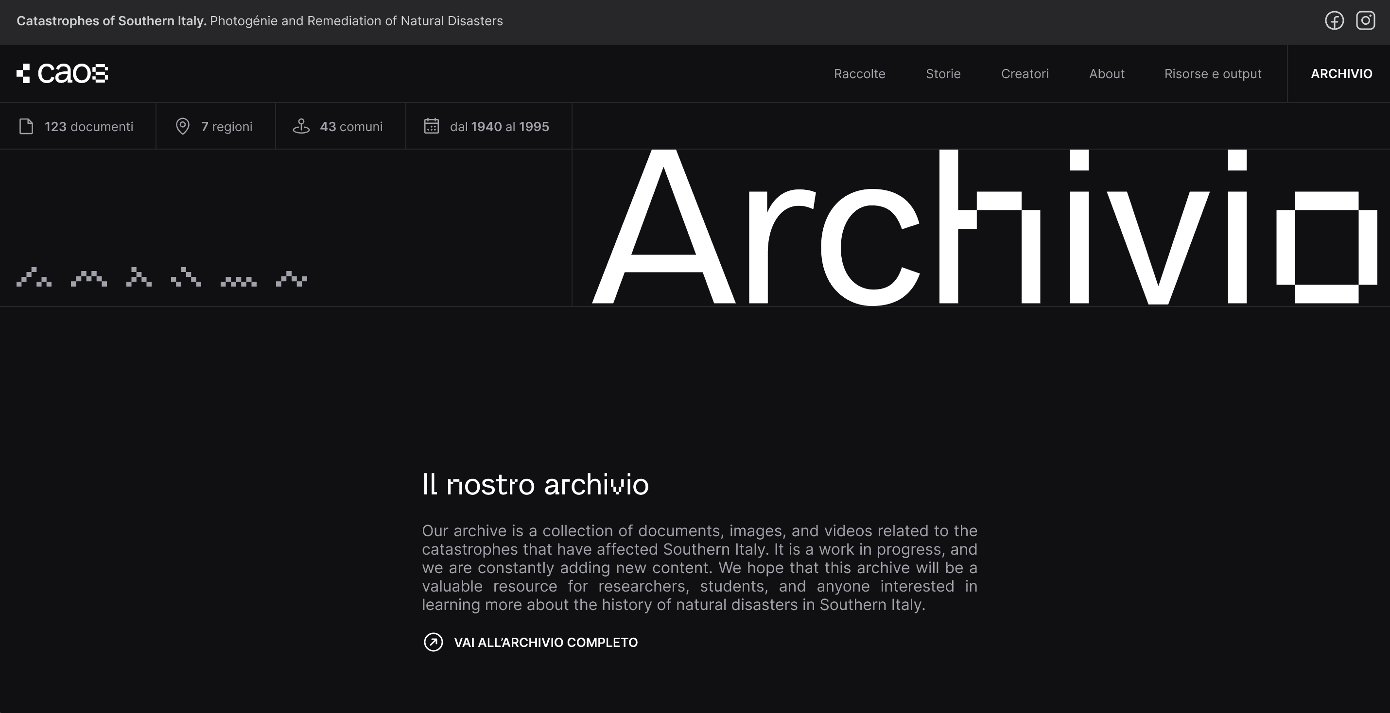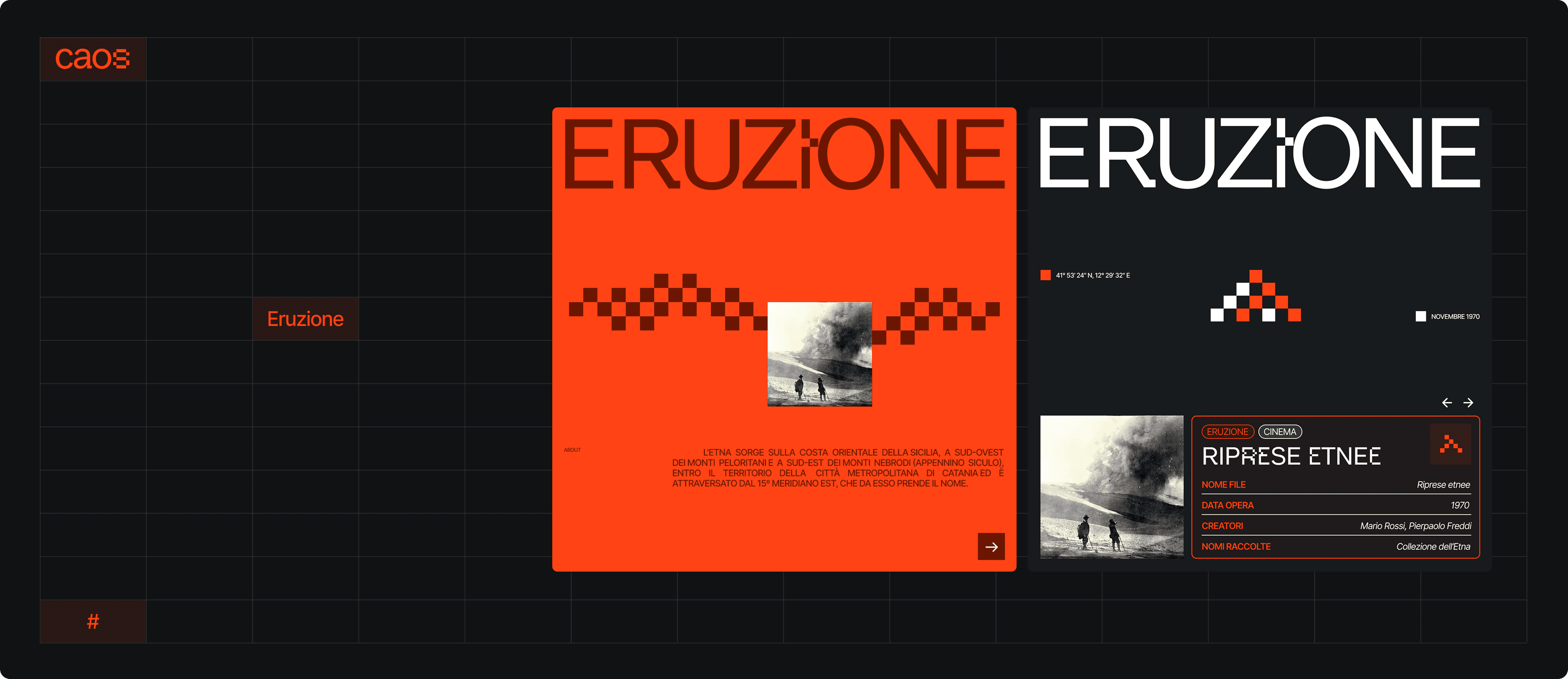 The Caos project (Catastrophes of Southern Italy) was commissioned by the University of Catania, with the goal of cataloguing media related to various natural phenomena such as eruptions, storms, landslides, and more.